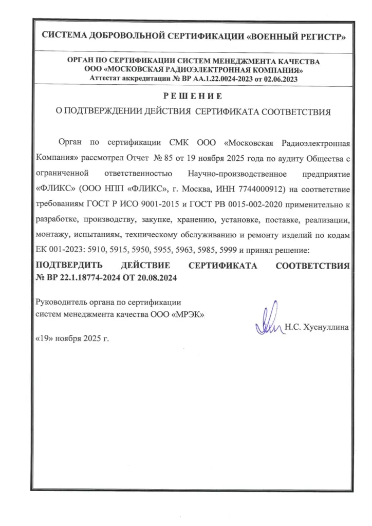 НПП «Фликс» уделяет особое внимание качеству изделий и срокам выполнения заказов, придерживаясь правила: «качество — это когда возвращается заказчик, а не продукция».